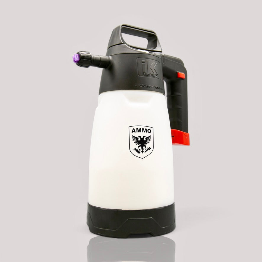 Once AMMO FROTHÉ was created, we needed a way to pump it up like Arnold to get that creamy goodness. After testing dozens (hundreds?) of different variations, the AMMO IK AERATOR was created. It’s pretty cool – won’t fall over easily. Holds enough for for 4-5 full washes at a time. And it’s specifically designed to bring out the best in FROTHÉ, so you get max lubrication as you wipe away dirt. Looks pretty cool parked on your shelf too.