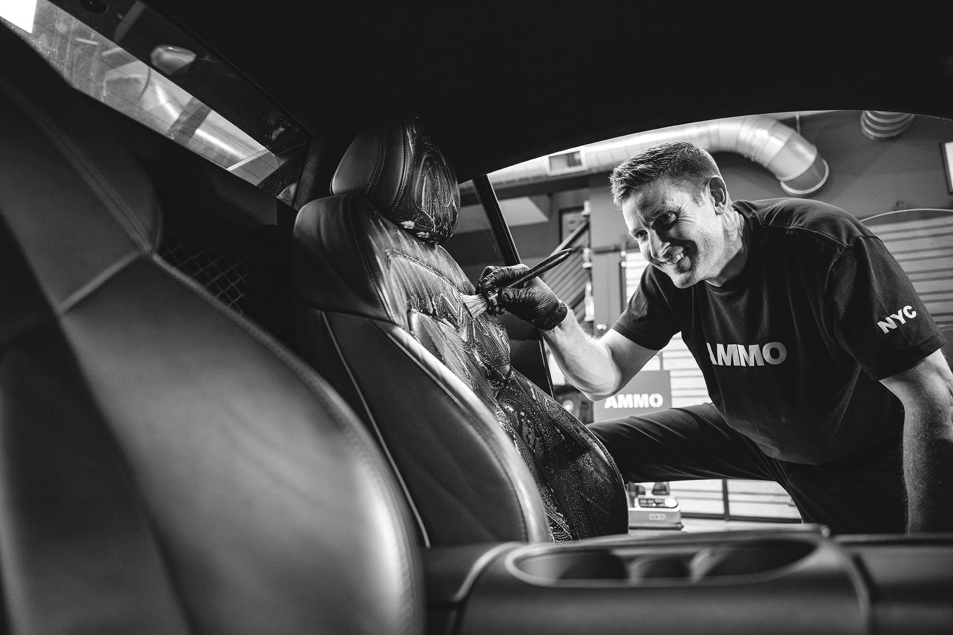 AMMO Lather is a gentle foaming cleanser that safely cleans upholstery and preserves the factory finish. Use it on leather, vinyl, plastic, and vegan leather alternatives. Lather cleanses dirt, oils, and grime leaving behind a clean matte finish. Keep it handy in your trunk for the random spills and stains that occur throughout the day. AMMO LATHER is perfect for weekly cleaning, but if you have a stain that requires a more precise approach, use AMMO SYPHON or AMMO DYGEST. Together, there’s nothing they can’t clean (or at least make look better).