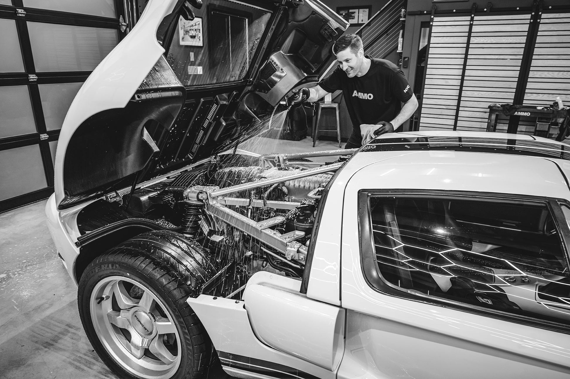 It’s cold. Or maybe you don’t have access to a hose. But your car, it’s dirty. You just need to make it look good, and spray wax alone just won’t cut it. That’s what AMMO FROTHé is for. A 20x concentrated humectant that creates a thick shaving cream-like foam. It’ll protect the surface of your paint from scratching during a hoseless wash. AMMO FROTHé can be used on wet or dry paint and does not require a final rinse. Perfect for apartment dwellers, water restricted areas, and out on the road with no access to water.